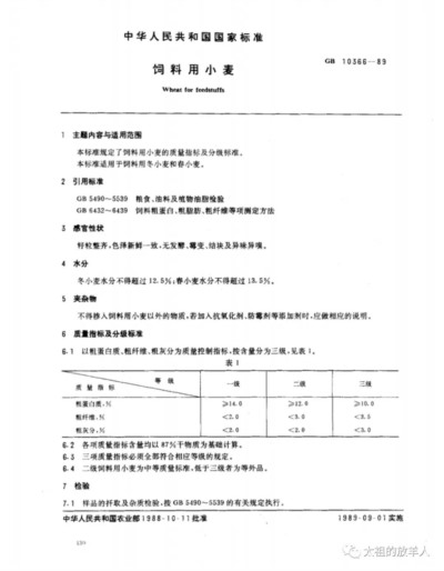 注意看,有一篇1989年发布的标准,题为《饲料用小麦》。我查了一下,是GB,国家强标。(我实际上不指望“震惊”的人能明白国家强标是个什么概念。)
