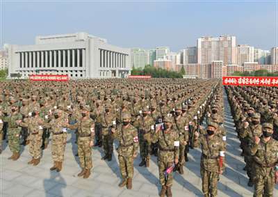 5月17日当天,朝鲜人民军军医部门举行誓师大会,“誓言压制在平壤的卫生危机”。