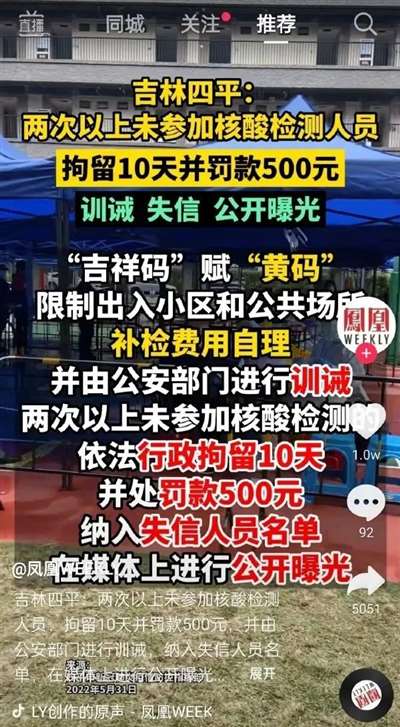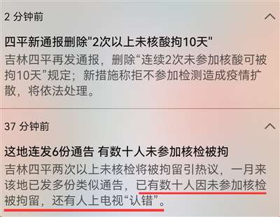 吉林四平,“两次以上不做核酸,行拘、罚款、失信、媒体曝光”一条龙处罚。