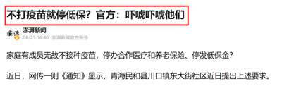 不打疫苗,就不准进商场、不准坐公交,甚至连“停办医疗、养老业务,停发低保金和残疾人补贴”这种字眼都出来了,然后网友一骂街媒体一曝光事情上了热搜,官方人士出来笑着打了圆场:“就是吓唬吓唬他们,主要还是倡议,不存在强制性要求。”