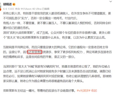 编者按:深圳“宾利大战劳斯莱斯”事件落下帷幕,胡锡进定调只是“一起普通的车位纠纷事件”,要求大家不必“过分关注”。老胡一颗悬着的心终于放回了肚里。