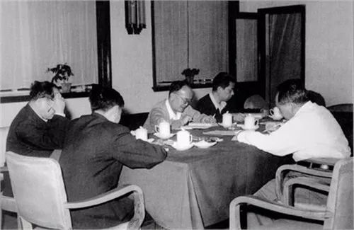 1959年,毛主席在杭州与邓力群等一起读苏联《政治经济学教科书》