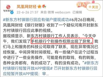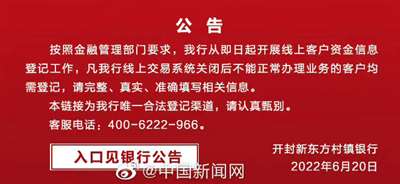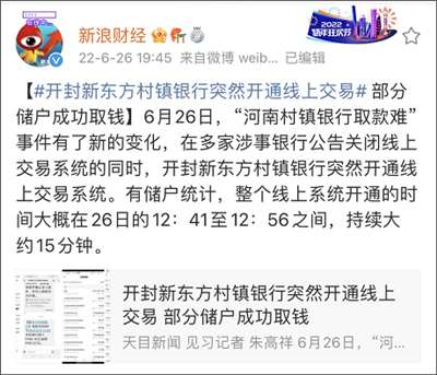 开封新东方村镇银行,悄悄开通了15分钟的线上取款,随后迅速关闭。
