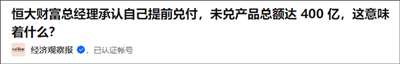 面对众多投资者的质疑,恒大财务总经理承认自己已经提前兑付,原因是“家里有急事”。