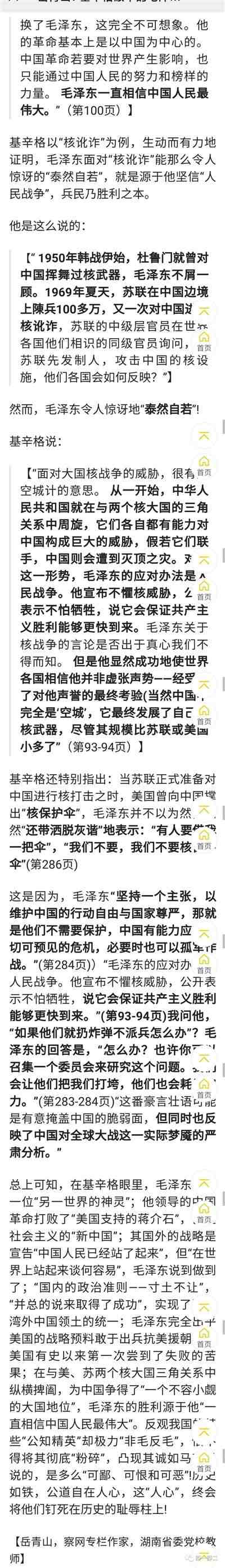 既然引起讨论的文章名为《基辛格眼中的毛泽东真值得看》,那就把这篇文章附后。