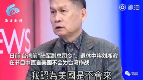 比如2020年10月8日,台前“陆军副总司令”、退休中将刘湘滨面对“美国会不会来”的问题时直言美国不会为台湾作战,他指出:(台湾)就算当豪猪,豪猪最后还是会死!今天台湾不管你再厉害,战争一发起,你就没别的路!(只有投降)