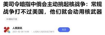 2021年2月2日,据华盛顿邮报报道,主管美军战略核力量的最高将领美国战略司令部司令、海军上将查尔斯·理查德就公开宣称,美国并非不可能与中俄爆发核战争。