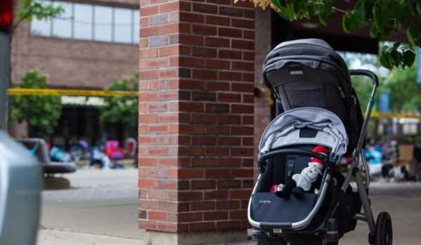 随着枪声接连响起,人们尖叫奔逃。母亲推着婴儿车、孩子骑童车惊叫逃离,还有人推着坐轮椅的老人。地上散落着童车、童帽、没吃完的薯片、开了封的巧克力饼干等,许多童车上还插着美国国旗。