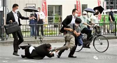 枪手连开两枪直至安倍倒地,却没有看到一个保镖上前为他挡子弹,要知道,保镖的职责不是抓人杀人,而是保护人。所以当看到保镖的第一反应居然是去抓枪手,老猫就觉得很诧异了,而且保镖并没有习惯性地先拔枪而是徒手上前去抓枪还在手上的枪手,不担心枪手身上可能会有炸弹吗?难道这不反常吗?