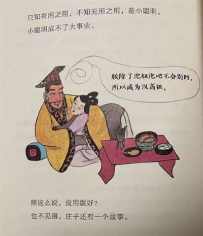 再比如对于经典的“王顾左右而言化”的解释,书中居然用“昨晚那妞的小曲是怎么唱的”的这样明显低级趣味的问题,而回答则是“晚上不喝酒,人生路白走”这种明显错误人生观、价值观的内容。