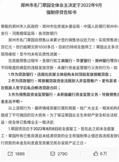 各大楼盘业主的公开信我都看了,写的都非常有理有据,接近于完美受害人,不仅彬彬有礼,且都给出了继续还贷的条件,那就是楼盘正式复工,保证能把房子交付到他们手中。