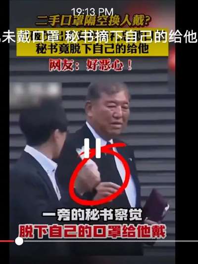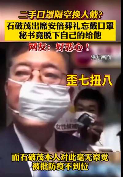 今天,日本的朋友告诉我说,安倍的竞争对手石破茂,今天去参加安倍葬礼没有戴口罩,秘书发现他没有戴口罩,赶紧摘下自己的口罩给石破茂戴上,日本网友纷纷表示,石破茂戴秘书的二手口罩实在太恶心了。我想说,日本网友,你们懂个屁,秘书救了石破茂一命,你们知道吗?你们不知道日本的防疫很严格吗?安倍就是没有戴口罩,就被打死了,幸好秘书及时发现,冒着自己被打死的危险把口罩给了石破茂戴上,不然的话,再晚一会,说不定石破茂就被打死了,这可是救命之恩啊!