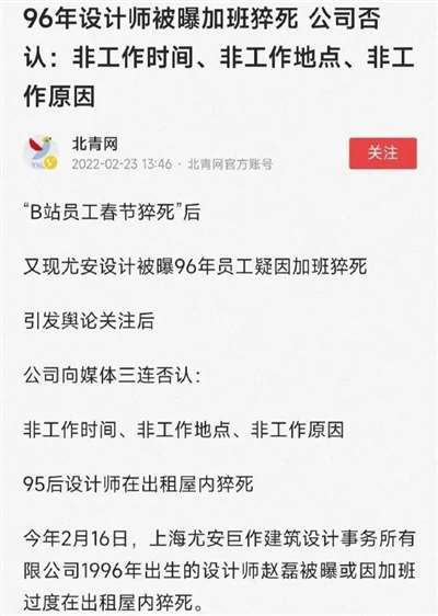 一个春节,短短20天里,B站员工猝死、上海建筑设计公司员工猝死、字节跳动员工猝死。