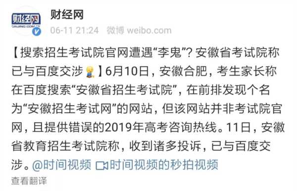 高考填志愿是影响一辈子的大事,百度诈骗广告的手竟然都伸到了这里。安徽许多孩子在用百度搜省招办网站时排名第一位的竟然是个假网站,逼得安徽省招办不得不跟百度交涉。