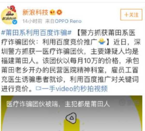 当然了,最典型的还是医疗诈骗。深圳警方抓捕的一莆田医疗诈骗团伙,通过百度的广告系统进行推广从而实施诈骗。在正常医院只需花数十元的诊疗费来到这里需上千元,而莆田医疗团伙更是通过恐吓等方式要求患者复诊。