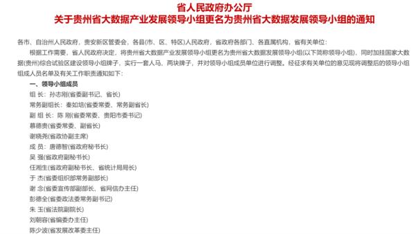 核心信息就是“贵州省大数据产业发展领导小组”中的“产业”二字去掉了。