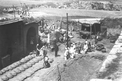 由于废金属如此短缺,铁厂的工人便从当地人手中全力收购旧铁轨2。这些人曾参与拆毁过旧山西3军阀首领阎锡山的铁路。一些旧铁轨被熔化并铸成厚重的铁板作为闸门,另一些则锤打成(防倒转的)长棘齿。为了制造升降闸门的齿轮,一个老装配工挥舞着凿子,在实心铁盘上把齿轮挨个给凿出来。尽管整个灌溉工程进展不顺,闸门还是建成了。最终这个闸门被闲置在灌溉渠里,七十年代阳早故地重游时也还在那。