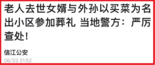 除此之外,信江公安发布的内容也有很大问题。他们原标题是说这女婿和外孙两人“在当地宣布紧急状态后拒不执行,借买菜之名外出参加葬礼。”