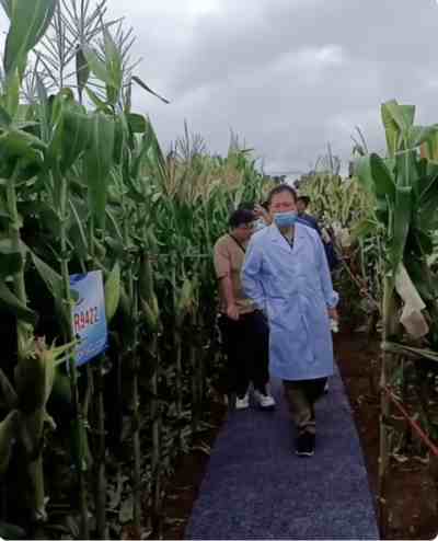 8月29日,贵州贵阳,网传一玉米田间交流活动,专家身着“专家专属”的白大褂,脚踩地毯(白地毯虽简陋但好歹还能让专家的鞋不沾尘土),走在乡间的玉米地里,足下生风,一堆长枪短炮咔咔拍,更显专家神采非凡。