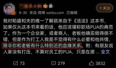 还有人吐槽自己的老板学习稻盛和夫之后给公司带来的“灾难”。