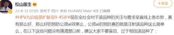 但凡HPV疫苗出现一点什么新的变化,都能很快受到广泛关注。比如8月30日,默沙东宣布其九价HPV疫苗使用人群年龄由原来的16-26岁扩展为9-45岁适龄女性的消息,很快冲上热搜,不少人为此叫好。
