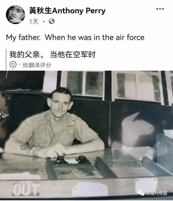可能英女王热度过了吧,接着哀悼英国“奶奶”的余热,黄秋生又在脸书上,缅怀起他的白人父亲,骄傲的放出他爸在英军服役时的照片。