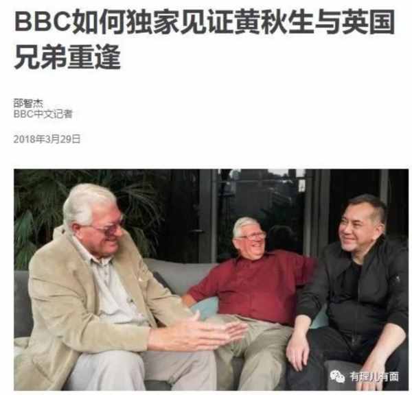 在BBC的“找爸爸”报道帮助下,2018年黄秋生见到了已经是古稀老人的两位同父异母哥哥。就是上图里,黄秋生在香港被欺凌时,由爸爸带着游玩的两位白人小孩。