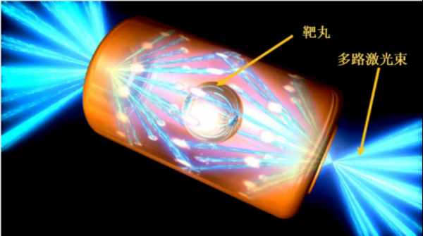 所谓激光惯性约束,指的是不对聚变燃料进行外力(如磁力)约束。利用高能激光去轰击燃料来产生高温高压环境,静止的燃料由于惯性来不及散开,处在这种极端环境下,聚变反应由此发生。