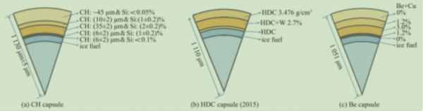 在目前较为成熟的设计里,构成靶丸外层的材料主要是碳氢(CH)、高密度碳(HDC)或者铍(Be)。这些材料被激光轰击消融爆炸后,变成高温等离子体。