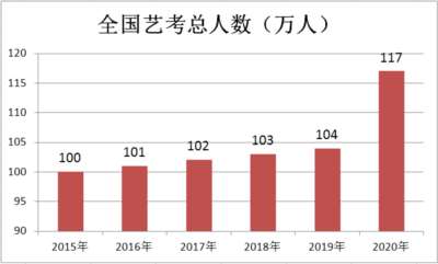这个数字在2020年暴涨到117万,高考报考人数是1071万,艺考生比例已经达到了10.92%,等于说每10名高考考生里面,就有1个报名参加艺考。在此期间,中国设置艺术专业的高校也从597所猛增到将近2000所。