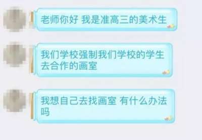 这种推荐还算是比较温和的,一些班主任在学生没有选择自己指定的机构时,会对学生进行威胁,“老师说,如果你不去这家机构,我就不能准你的假,也不能让你参加艺考。最后,是我爸妈给这个老师送了几瓶泸州老窖,请他吃了几顿饭,包了点红包,才把这个事情给搞定的”。