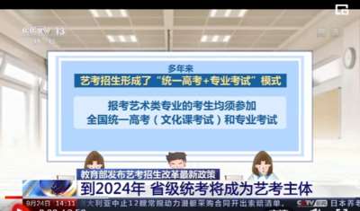 2021年9月,教育部发布《关于进一步加强和改进普通高等学校艺术类专业考试招生工作的指导意见》,要求到2024年,要基本实现艺术类专业省级统考全覆盖。