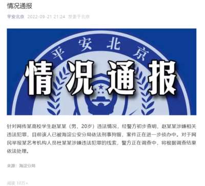 9月21日,海淀公安发布情况通报: