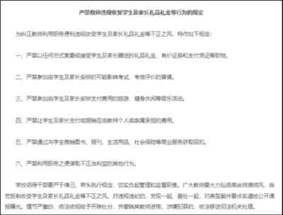 我国教育部在2014年也曾颁布《严禁教师违规收受学生及家长礼品礼金等行为的规定》,设立了6条“红线”。