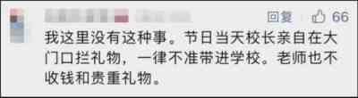 不过留言中也不全是负面反馈,也有比较正面的。有的学校在节日时,校长会亲自在大门口拦礼物,一律不准带进学校,老师们也有很多品德高尚不收礼的。