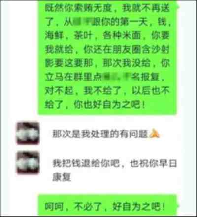 随后11月,曹老师又向汪女士索要礼物,汪女士忍无可忍,直接在微信上向曹力严词拒绝。