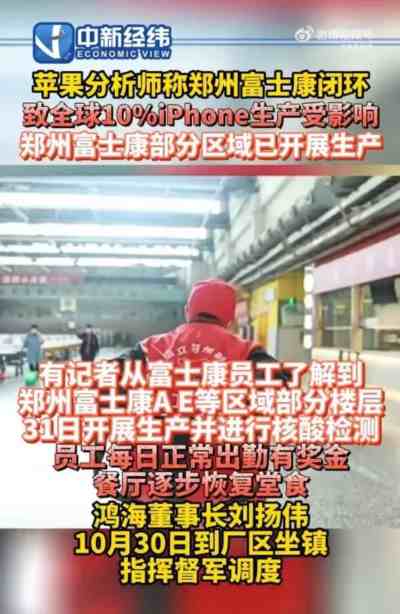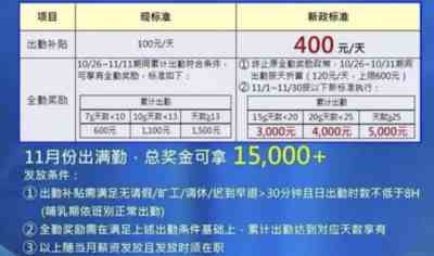 11月1日,富士康郑州科技园官微发布11月份激励新政策:iDPBG郑州厂区员工出勤每日补贴400元,11月全勤总奖金超15000元。