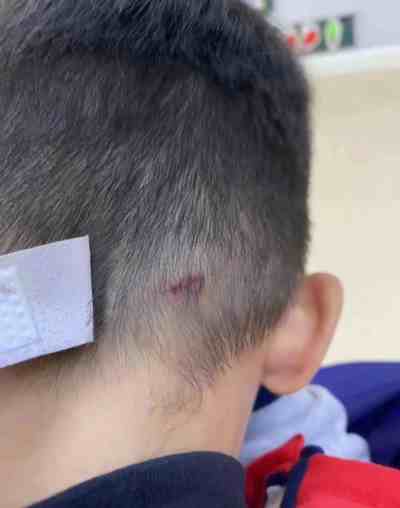 冲突中,小航用玩具尖锐的顶端,戳伤了小鲁的后脑勺,致使小鲁的后脑勺,有破皮,出现一道血口子。