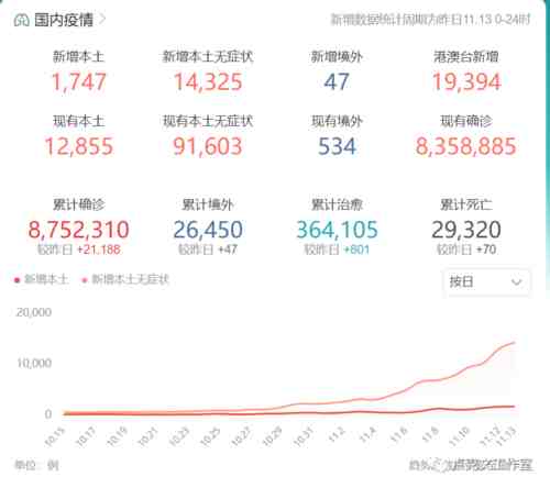 最近疫情数据逐渐走高,11月11日新增1452人、无症状感染者10351人;12日新增1675人、无症状感染者13086人;13日新增1747人、无症状感染者14325人,大家看下图中的曲线,从10月29日开始抬升,之后整体呈现稳定的数据增长,再没有出现大幅下跌。