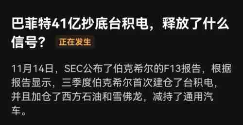 注意上图,绝大部分媒体和网友的焦点都集中在“巴菲特41亿美元”“抄底”台积电这个标题上,而忽略“加仓了西方石油和雪佛龙”这个消息。