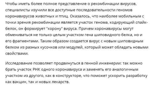 很巧,12月20日俄新社发布俄罗斯谢东诺夫大学科学家新发现:冠状病毒在重组方面最具活性的是编码刺突蛋白的基因组部分,它形成了冠状病毒的“日冕”,其不仅可以交换刺突蛋白基因的整个部分,还可以交换其片段。因此可以从一种冠状病毒的RNA中取出一段,然后用另一段类似的部分替换它进行重组设计。