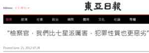 当检察官询问他们是不是仅次于“七星派”的第二大暴力组织时,另一位成员立马急了:“检察官说什么呢,我们比七星派强多了,我们的犯罪性质更恶劣,不想在七星派底下。在调查报告中请一定要写下我说的这句话。”