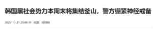 10月下旬的时候,韩国釜山警方开始异常紧张,很多人员进入了戒备状态,并做好了应对突发大规模暴力事件的准备。