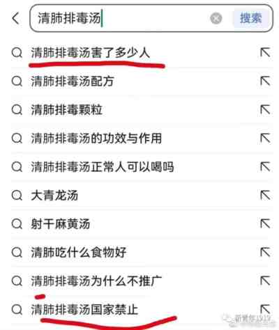 诸君,这样一个被国家列入“三药三方”,救人无数的“清肺排毒汤”,一副疗程仅100元左右的“清肺排毒汤”,百度给出的第一条关联消息不是别的,竟然是: