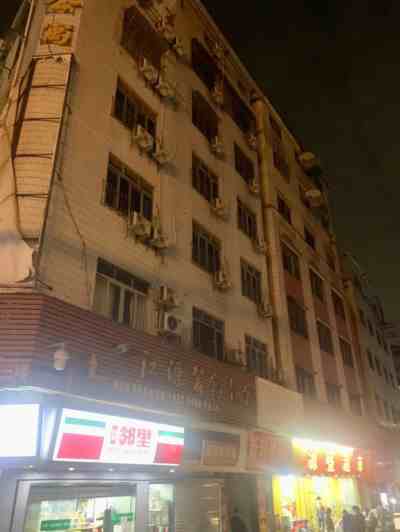 越往村子里走,人越多,沿街也有不少叫卖成衣的地摊。街边只有些许铺面还开门亮着灯,往上则是一排排漆黑的窗洞,不知是早早休息了,或者只是空着而已。