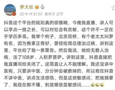 上个月,罗大伦老师在抖音直播无故被封,再前两个月,徐文兵老师被禁止在抖音讲课。