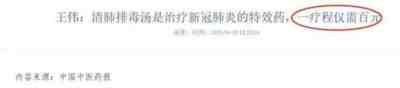 2020年,王伟院士宣布清肺排毒汤是治疗新冠肺炎的特效药,一个疗程仅需百元。