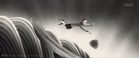 同时,还有一幕也在说明我们这一论断的合理性,那就是狐狸书生给货郎倒酒的过程里,是以请货郎喝酒的姿态呈现的,期间还满怀笑意,尽管这种笑意充满了虚伪和狡诈。这里影片里专门用了一个“请”字,不是没有意义的,我们想一下,剥削阶级在给劳动者灌输意识形态的时候,是不是同样是以“善意”的形态出现的,教育你应该怎么怎么样。这里的善意就表现为一个“请”字,请背后代表着什么?代表着恩赐。你看我对你多好,你背我上山,我还专门请你喝酒,你要学会感恩,感谢,不要心生埋怨和不满。殊不知,那杯酒里,藏着对意识的麻痹、使人喝下去就只能失去自我,最后在那只小船里跌进万丈深渊。