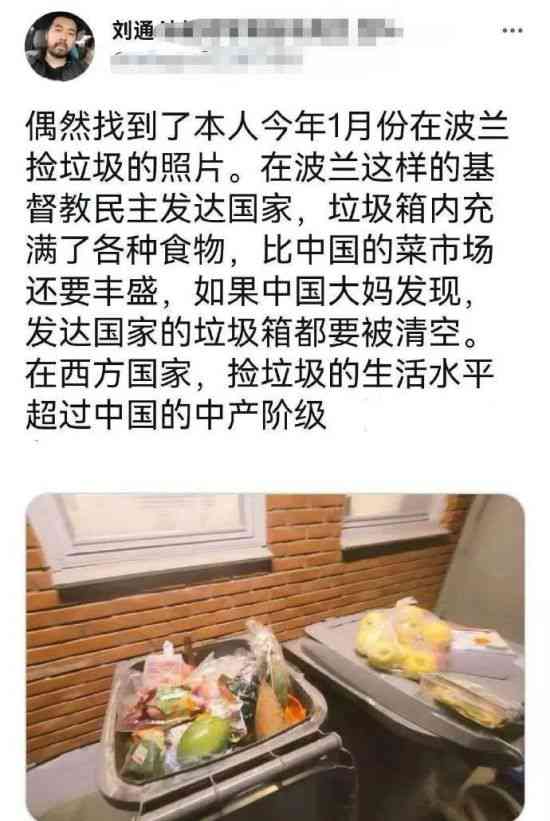 让人笑炸的是,这个润人在波兰捡垃圾,居然还捡出了优越感,居然专门在社交媒体上宣称他在波兰垃圾堆里捡的食物都比中国菜市场的丰盛,说在西方国家捡垃圾的生活水平都超过中国的中产阶级。