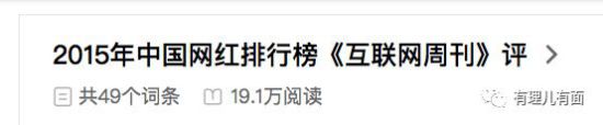 2015年,他登上了百度百科的《中国网红排行榜》,同样在榜单上的,还有王思聪、Papi酱等一批大名鼎鼎的人物。